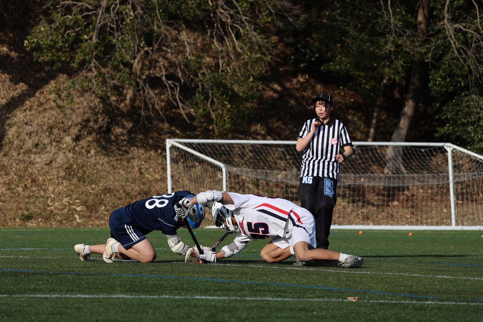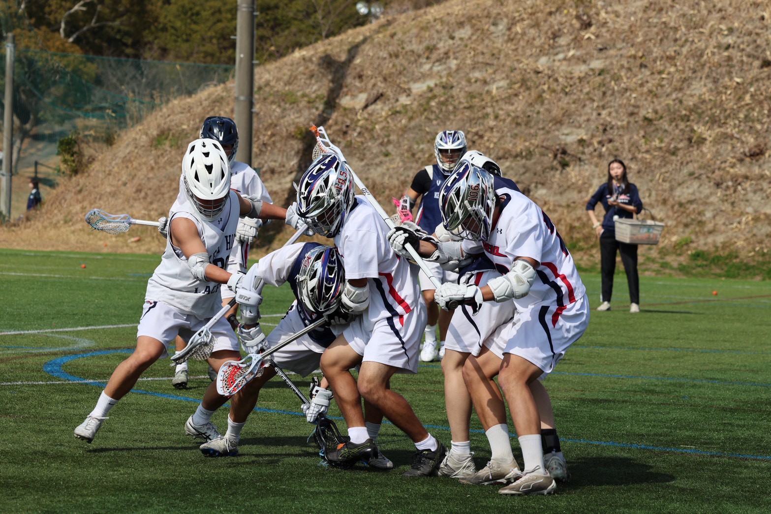 スコア後のフェイスオフでは円陣の覇者一丸(FO#95)が見事ポゼッションを奪い、またしても柳辺(AT#52)の冷静かつ鋭いショットが光り、4-0で前半終了。